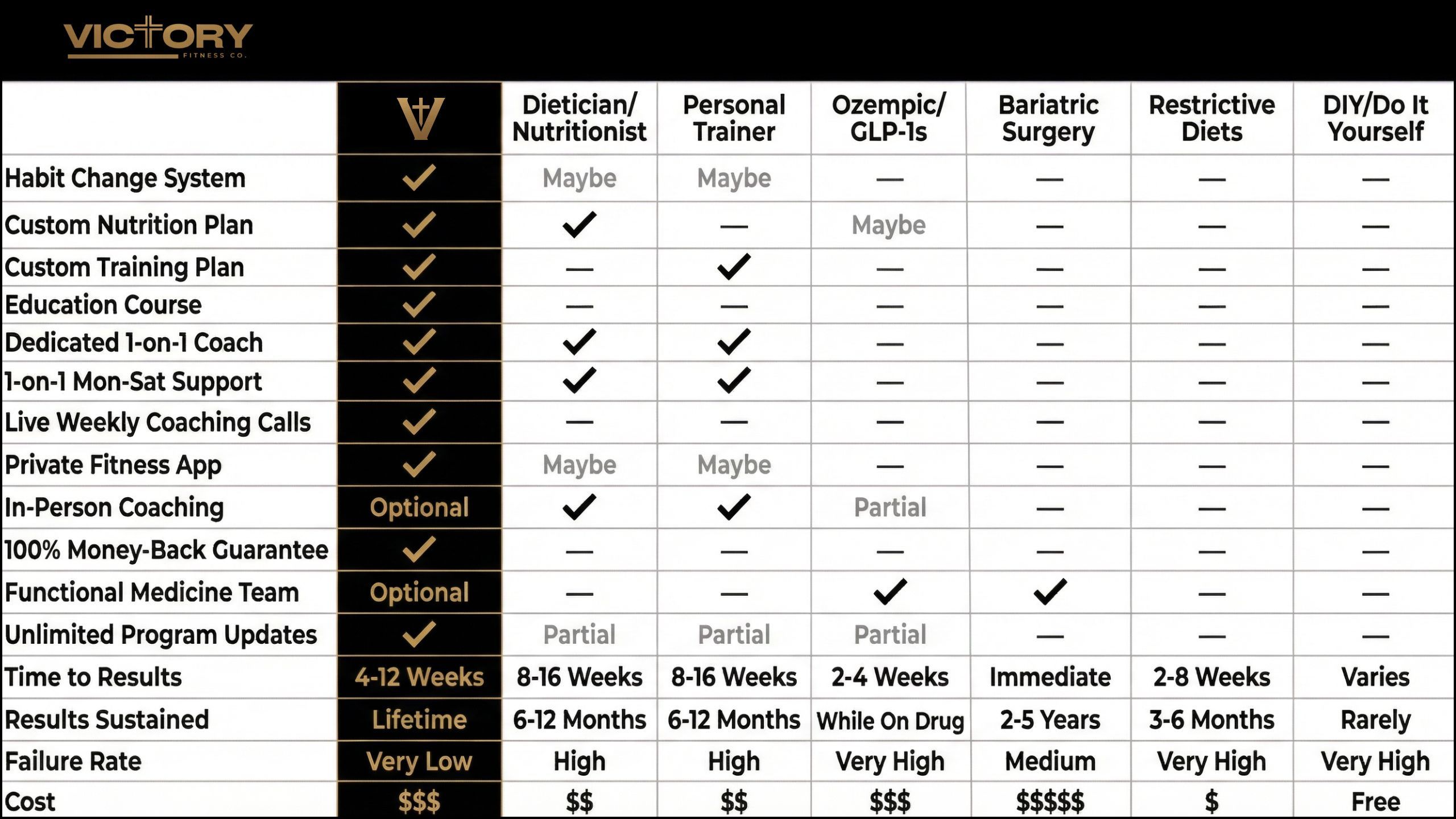 Medical Disclaimer: The information and services provided by Victory Fitness Company LLC are for informational and educational purposes only and are not intended as a substitute for professional medical advice, diagnosis, or treatment. Our staff are not medical professionals, registered Dietitians, or licensed healthcare providers. Always seek the advice of your physician or other qualified health provider with any questions you may have regarding a medical condition. Never disregard professional medical advice or delay in seeking it because of something you have read on this website. If you think you may have a medical emergency, call your doctor or 911 immediately.